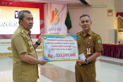 Kepala Bidang PMD Provinsi Riau Darwis S.IP,MM mendampingi Mentri Dr. (HC) Drs. A. Halim Iskandar, M.Pd disaat berkunjungan ke Bazar Provinsi Riau