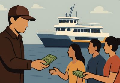 Contohnya, penumpang yang berangkat dari Pelabuhan Tanjung Harapan dikenakan bayaran Rp1.300.000, yang merangkumi Rp950.000 untuk tiket pergi balik (PP) dan Rp350.000 sebagai “uang Gerenty”, belum termasuk cas boarding pass.